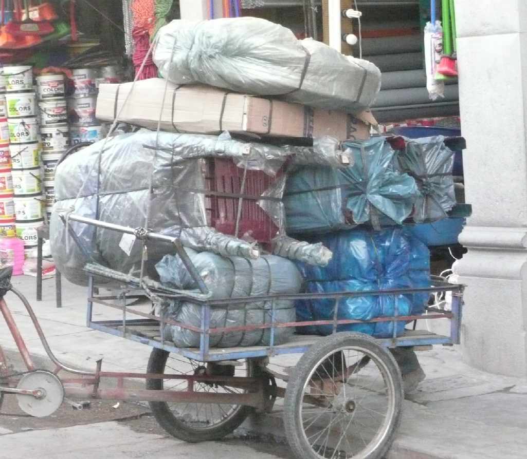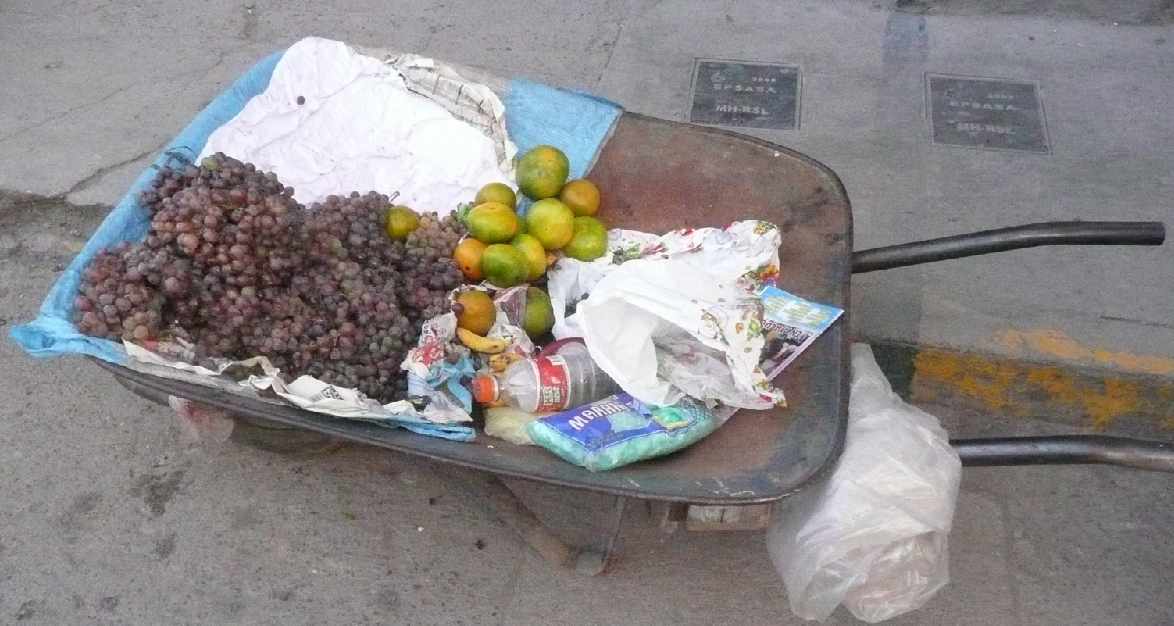 the lowly wheelbarrow of an Ayacucho fruit vendor